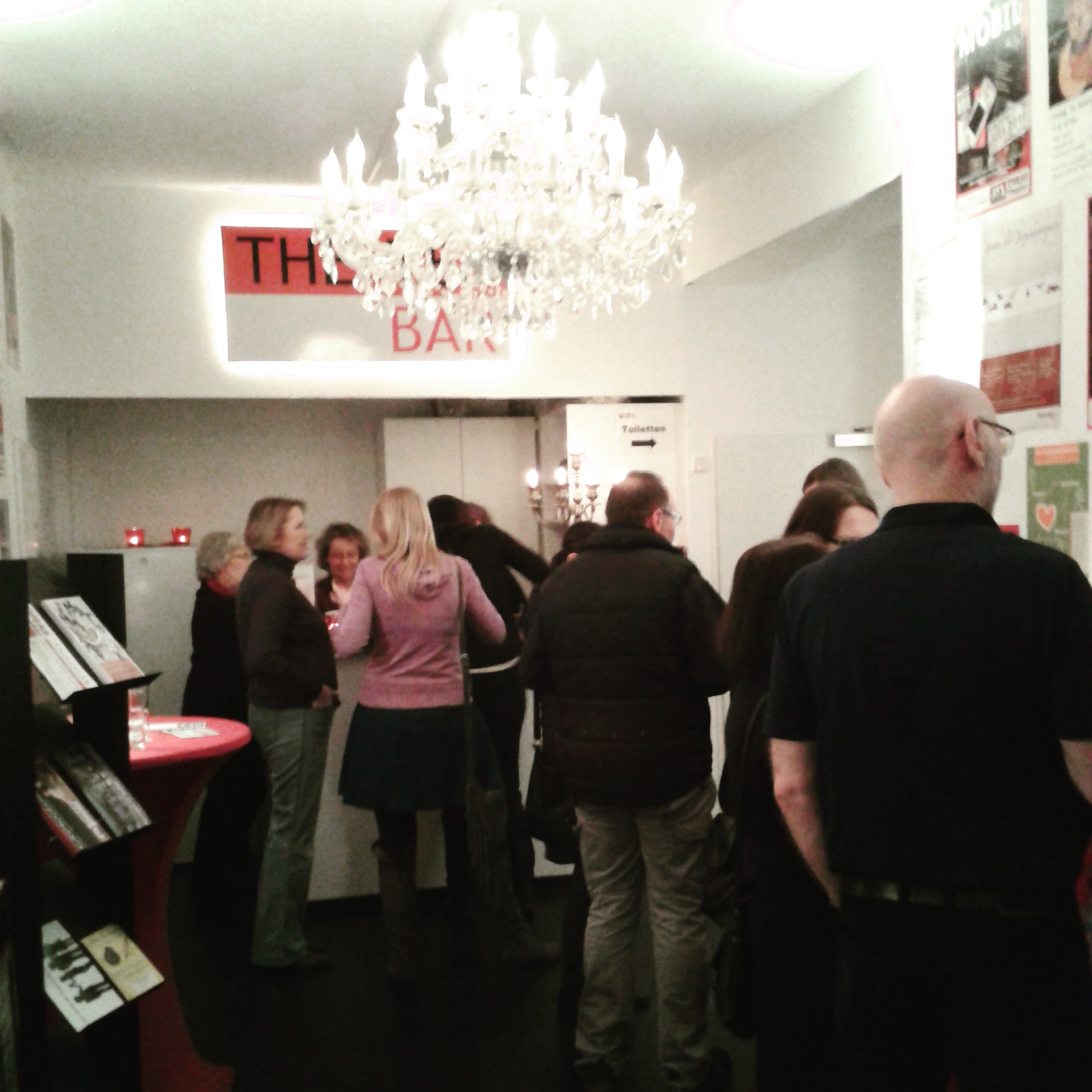 Seit 2009 haben wir alle unsere Produktionen auch im Theas-Theater in Bergisch Gladbach gespielt. Von Anfang an stimmte die Chemie zwischen Thetaerleiter David Heitman, der das Haus 2008 gegründet hat, und uns. Wir mögen dieses kleine, sehr liebevoll geführte, unabhängige Haus sehr. Vor jeder Aufführung gab David Heitmann dem Publikum eine kleine Einführung zur Gruppe und zum Stück. Sehr charmant.