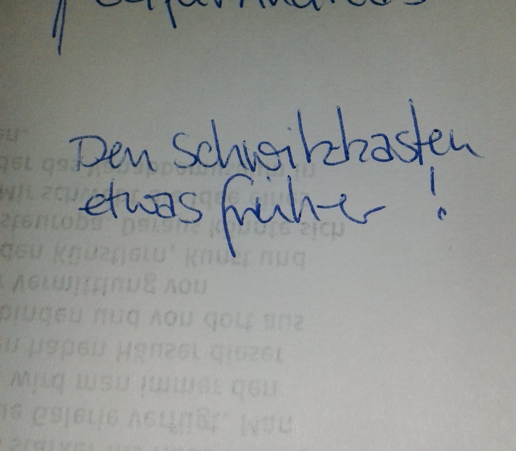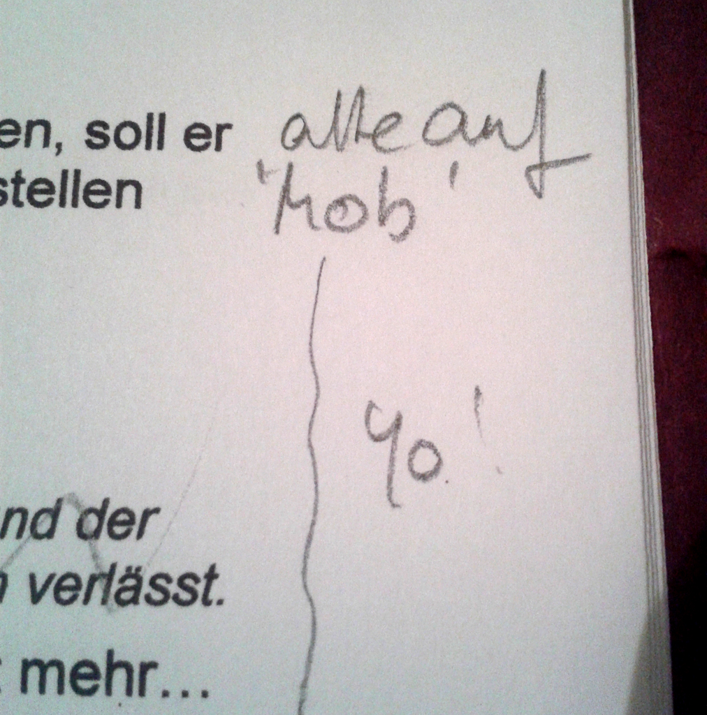 Zurück vom herrlichen Probenwochenende in der Eifel. Wir haben sehr gut gearbeitet, gut gegessen, hatten sehr viel Spaß und einen gemütlichen Abend am Kamin. Das Stück wurde noch ein bisschen gekürzt und komprimiert – leider blieb auch die Brombeermarmelade auf der Strecke – und eine Lösung für den Araber improvisiert, den wir nach langer Suche endlich gefunden, dann aber bald auch wieder verloren hatten. In gut fünf Wochen ist Premiere, wir schauen dem erwartungsfroh entgegen.