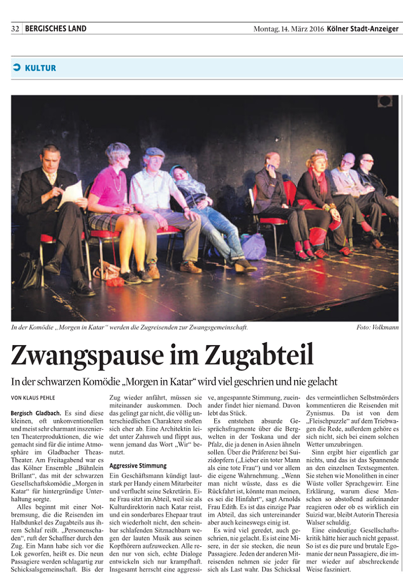Morgen folgt der zweite Streich im Theas Theater in Bergisch Gladbach.